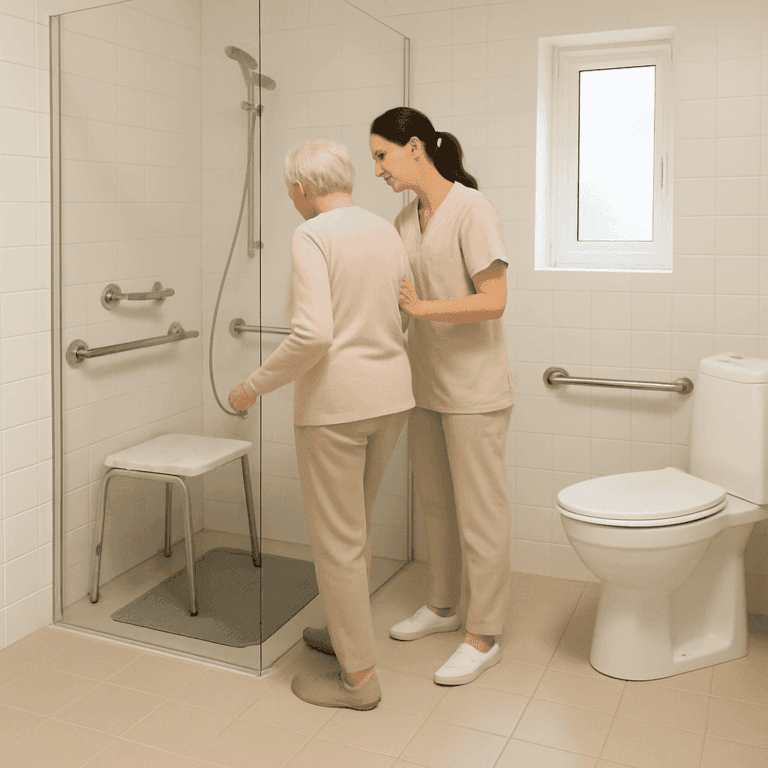 Das Badezimmer ist einer der riskantesten Bereiche in der Wohnung. Eine barrierearme oder barrierefreie Badausstattung schützt vor Stürzen und erhält die Selbstständigkeit bei der Körperpflege. Für eine 24-Stunden-Pflege zu Hause ist ein sicheres Bad ein zentraler Baustein.